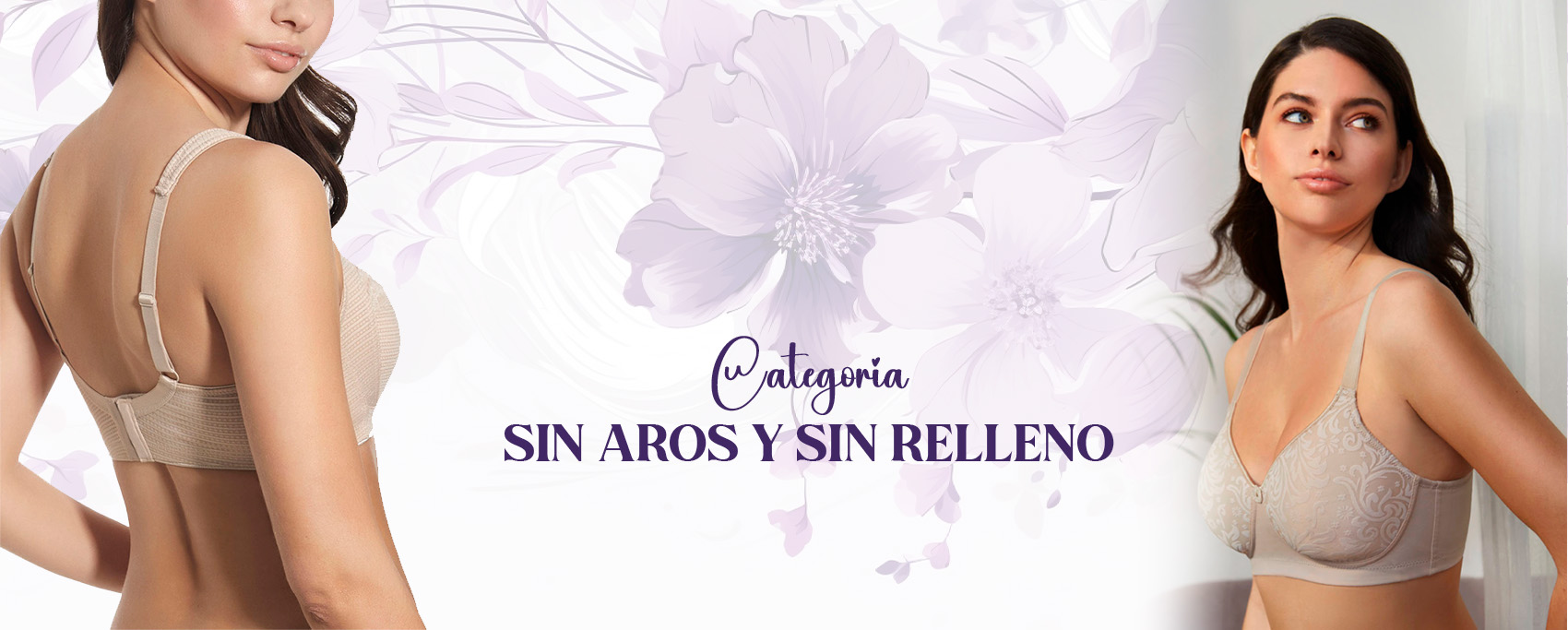 Tenemos muchos modelos sin aros y sin relleno para todas las tallas y copas. Sujetadores que van de la copa C a la copa F, con tallas de la 90 a la 120, siempre pensando en la máxima sujeción y comodidad. Los tejidos van desde los más básicos en colores neutros hasta los más especiales con delicados encajes para las ocasiones más especiales. Dentro de toda la selección, podrás encontrar algunos con apertura delantera o de medio cuerpo. También de algodón o en forma de triangulo, un básico que nunca falla y es ideal para las chicas más jóvenes que empiezan a llevar sujetador. Descúbrelos todos y encuentra el modelo que mejor se adapte a ti.ásico de microfibra hasta el más funcional como es el sujetador Nadia, con un cruzado de tules en el lateral para minimizar las imperfecciones. Para las más fans de la moda y las tendencias, tenemos sujetadores sin aros y con relleno tipo bralette, con un delicado encaje que es perfecto para combinar con tus looks de noche favoritos.